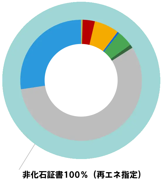 | 原則として、再生可能エネルギー指定の非化石証書を使用し、電源指定なしに、実質再生可能エネルギーとして、提供します。ただし、再生可能エネルギー指定の非化石証書が調達できない場合、再生可能エネルギー由来のJ-クレジットの代理無効化を行い、RE100クライテリア※1 に準拠する電力で提供します。 ※1 RE100テクニカルクライテリアとも呼ばれ、RE100プロジェクトで求められる電源調達の要件を意味します。 ※ 実質再生可能エネルギー100%に関しては、インバランス発生や修繕、事故、計画停止、系統からの出力抑制依頼時など止むを得ない場合を除き、年間の使用量に見合った再生可能エネルギー由来の電気を調達します。 |