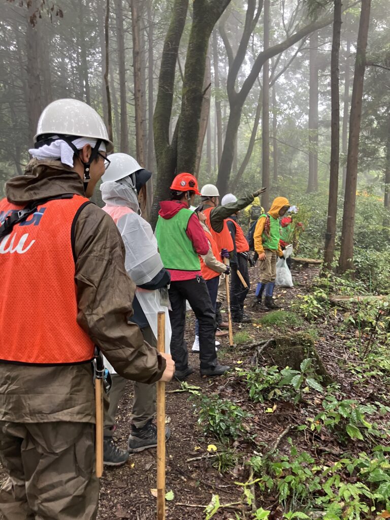 雨がしとしとと降る高尾の森。うっすらと霧がかった森は神秘的で、なんだか木々の息遣いが聞こえてくるようでした。 エナリス社員は山の尾根伝いに植樹を行いました。