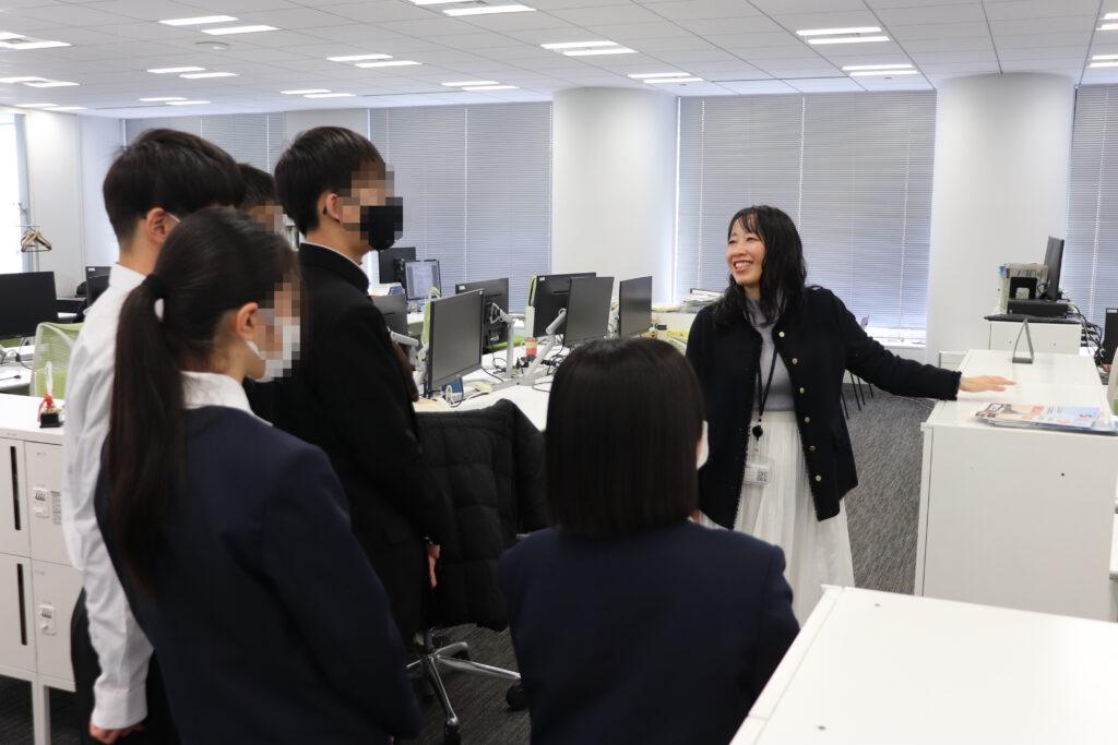 最後は、恒例のオフィスツアーです。さまざまな部署を回り、そこで働く社員から、仕事の内容や、誰の役に立っているのかを直接聞きました。今回は、社長のデスクを訪問し、直接言葉を交わす場面もありました。