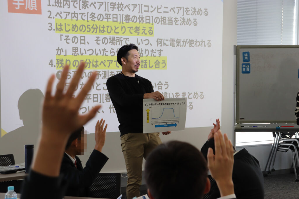 せっかくエナリスに来るなら、電気の学びを通じて、社会や職業、それぞれの探究テーマを探ってもらおうと、後半は先生と事前に相談して、みなさんの探究テーマに沿った質問に応える時間を設けました。