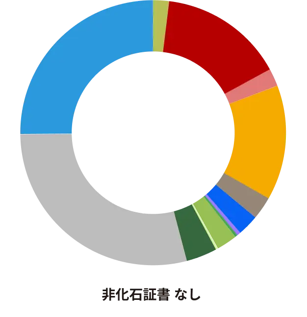 ■再エネ(バイオマス)0.01% ■再エネ(太陽光)0.03% ■再エネ(その他)1.88% ■火力(石炭)15.13% ■火力(石油その他)2.22% ■火力(天然ガスその他)14.00% ■原子力2.79% ■水力(3万kw以上)2.57% ■水力(3万kw未満)0.50% ■FIT電気(バイオマス)0.34% ■FIT電気(太陽光)2.50% ■FIT電気(風力)0.22% ■FIT電気(その他)3.77% ■地熱0.03% ■卸電力取引所28.85% ■その他25.16% |